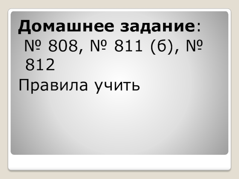 Домашнее задание: № 808, № 811 (б), № 812Правила учить