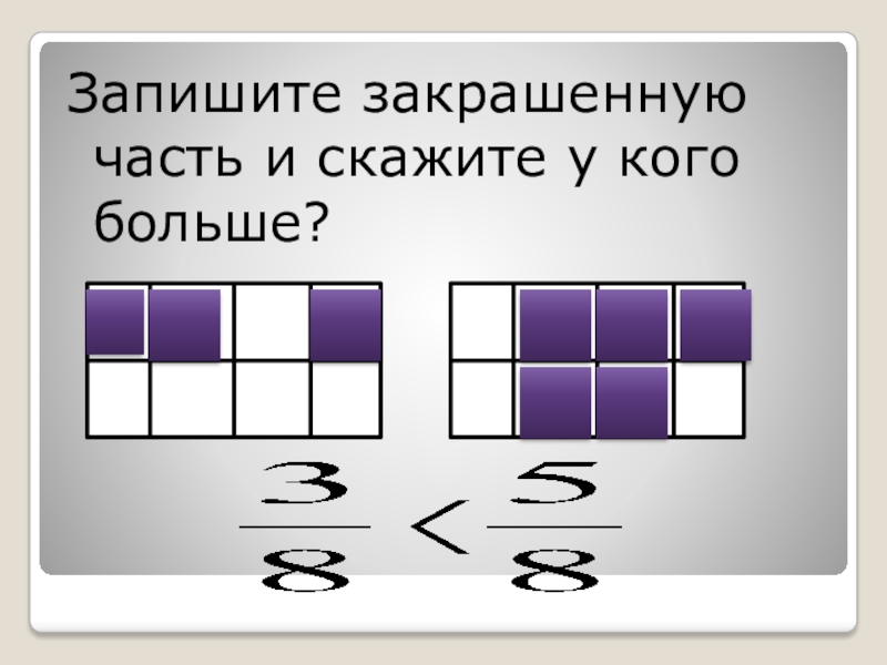 Слайд 3Запишите закрашенную часть и скажите у кого больше?