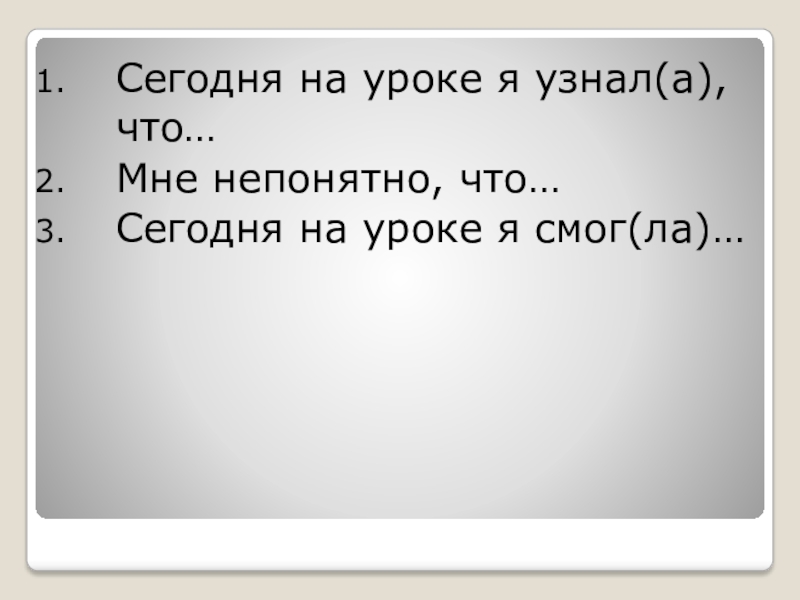 Сегодня на уроке я узнал(а), что…Мне непонятно, что…Сегодня на уроке я смог(ла)…