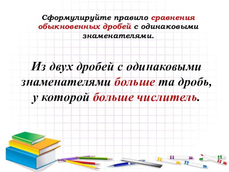 Сформулируйте правило сравнения обыкновенных дробей с одинаковыми знаменателями.