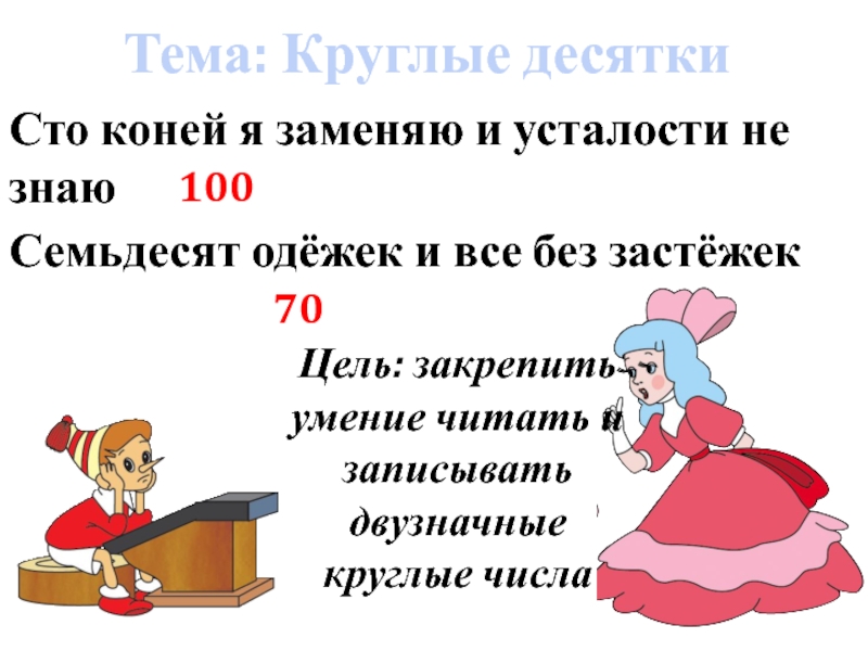 Цель: закрепить умение читать и записывать двузначные круглые числа