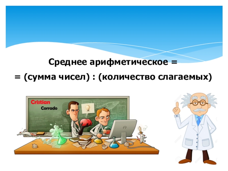 Среднее арифметическое = (сумма чисел) : (количество слагаемых)