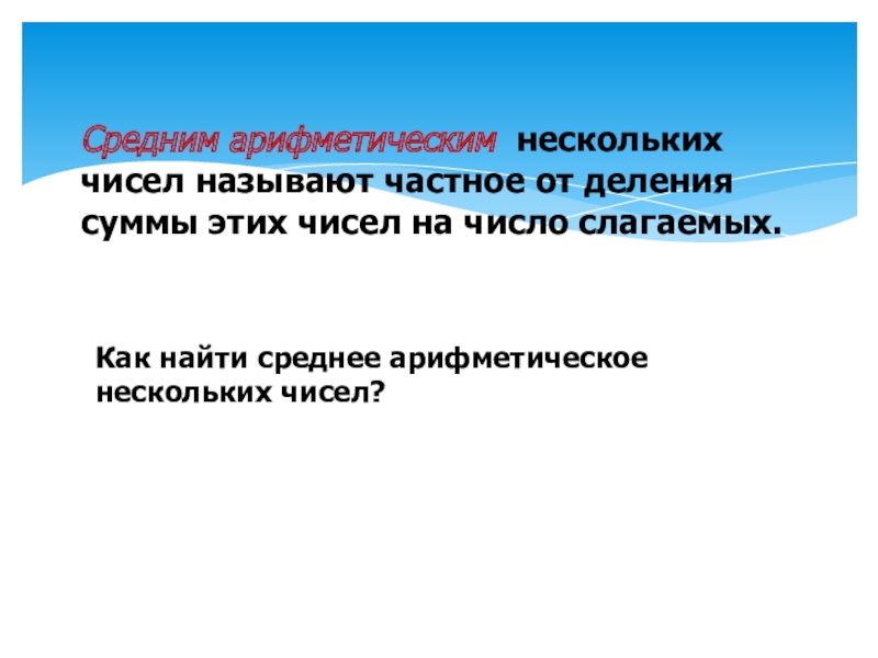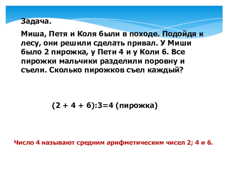 Число 4 называют средним арифметическим чисел 2; 4 и 6.
