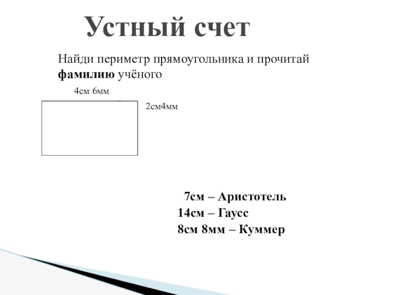 Найди периметр прямоугольника и прочитай фамилию учёного