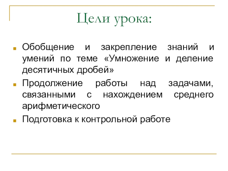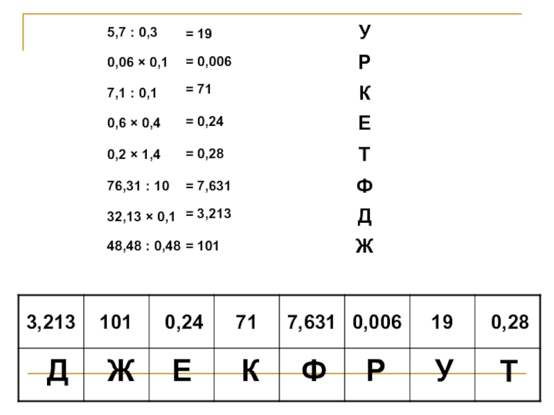 Обобщение и закрепление знаний и умений по теме «Умножение и деление десятичных дробей»