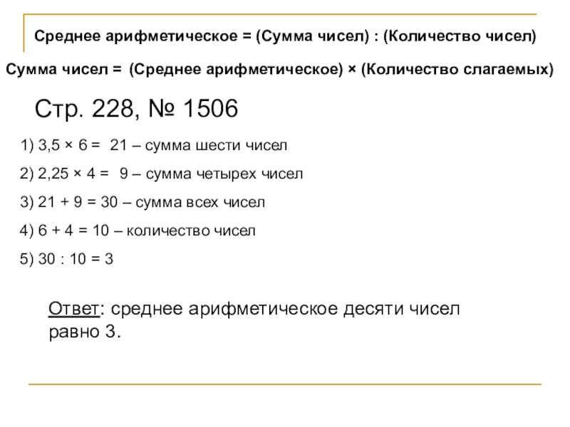Ответ: среднее арифметическое десяти чисел равно 3.