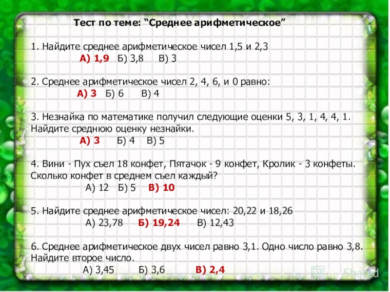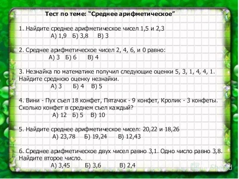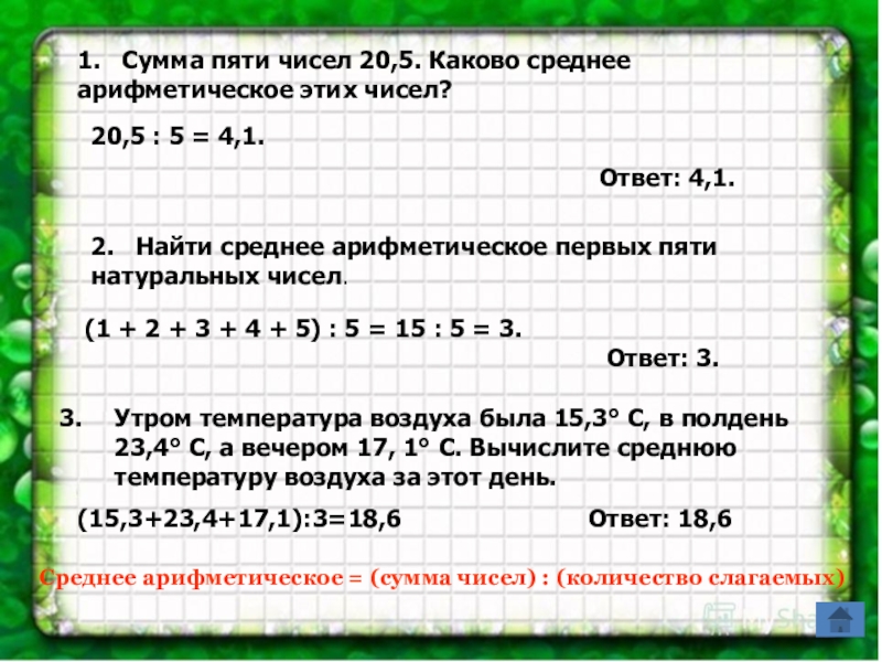 1. Сумма пяти чисел 20,5. Каково среднее арифметическое этих чисел?
