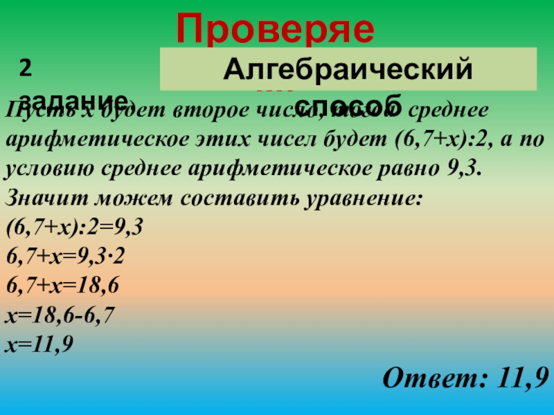 №2 Среднее арифметическое двух чисел 1,68. Одно число в 3,2 раза больше другого. Найдите эти числа.