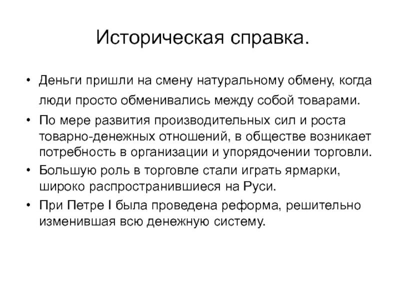Деньги пришли на смену натуральному обмену, когда люди просто