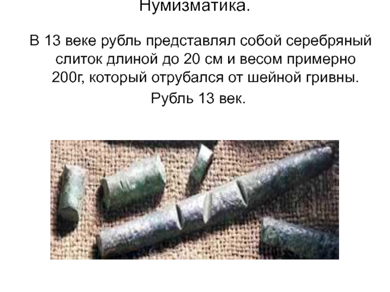 В 13 веке рубль представлял собой серебряный слиток длиной до