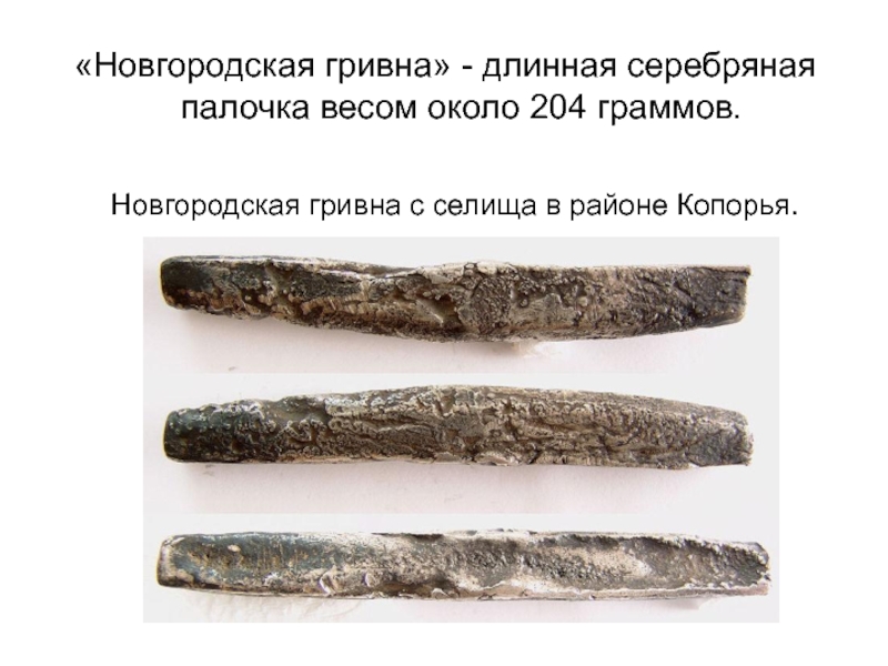 Слайд 12«Новгородская гривна» - длинная серебряная палочка весом около 204 граммов.