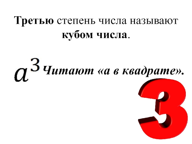 Третью степень числа называют кубом числа.Читают «а в квадрате».