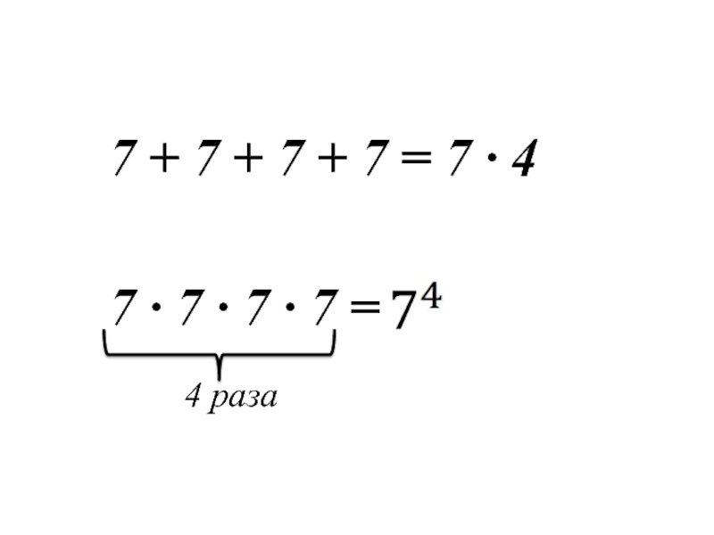 7 + 7 + 7 + 7 = 7 · 47 · 7 · 7 · 7 = 4 раза