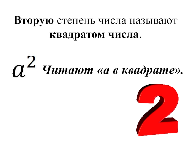 Вторую степень числа называют квадратом числа.Читают «а в квадрате».