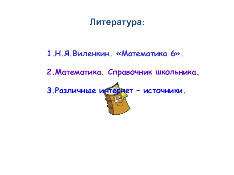 Литература:1.Н.Я.Виленкин. «Математика 6».2.Математика. Справочник школьника.3.Различные интернет – источники.