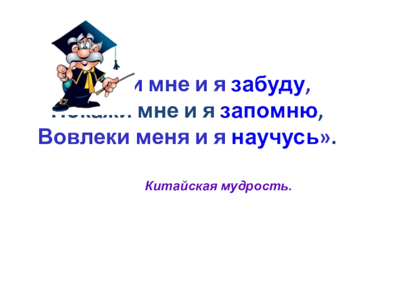 Слайд 2«Скажи мне и я забуду, Покажи мне и я запомню, Вовлеки меня и