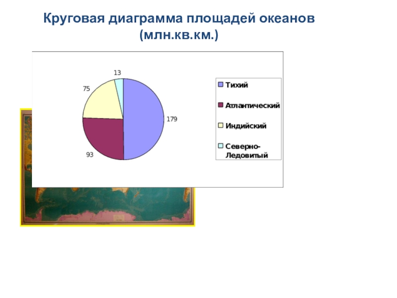 Слайд 4Круговая диаграмма площадей океанов (млн.кв.км.)