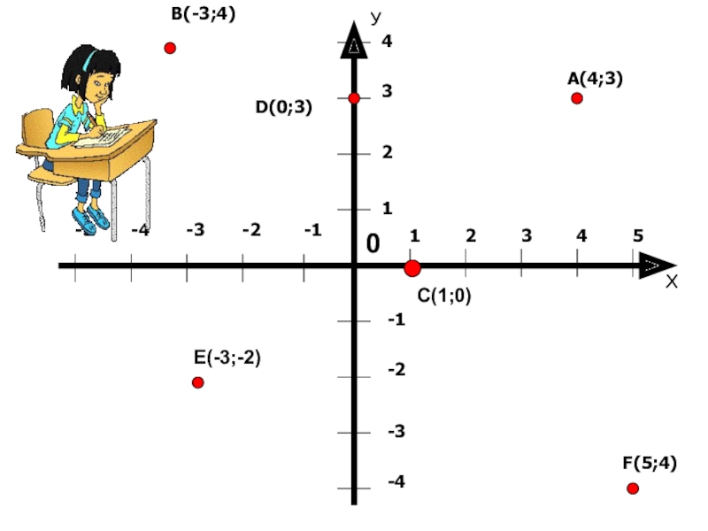 123451234-1-2-3-4-1-2-3-4-5B(-3;4)A(4;3)D(0;3)F(5;4)C(1;0)E(-3;-2)0ХУ