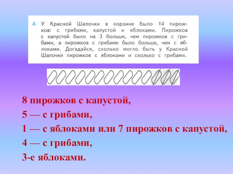 яблоками или 7 пирожков с капустой, 4 — с грибами,