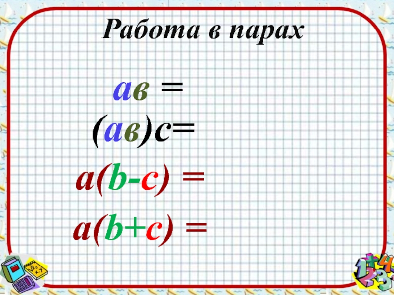 5. В выражении(а + 7) (b + 3) первым множителем является (а +7).