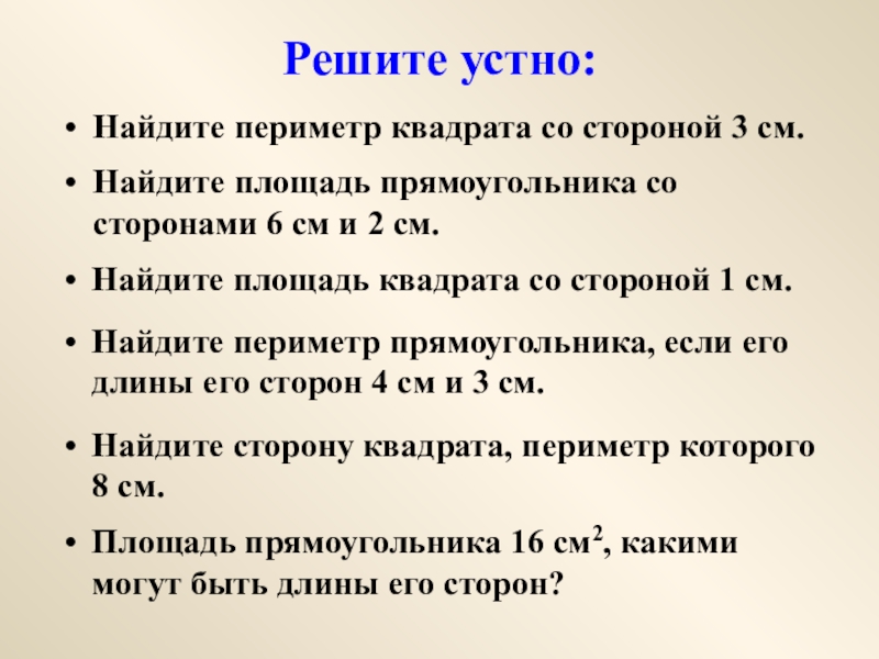 Площадь прямоугольника 16 см2, какими могут быть длины его сторон?