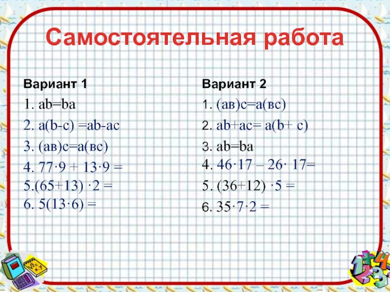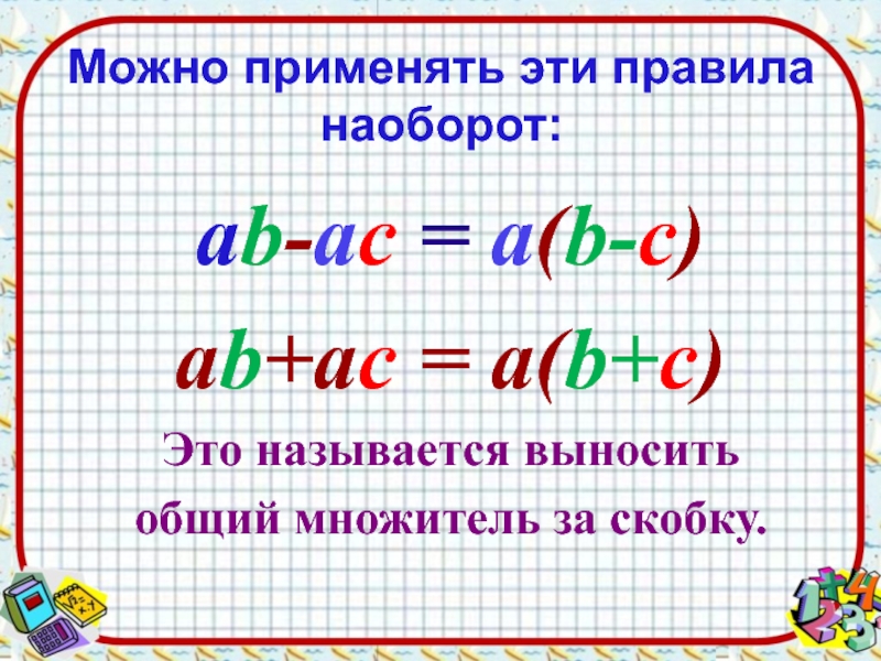 2. ab+ac= а(b+ c)