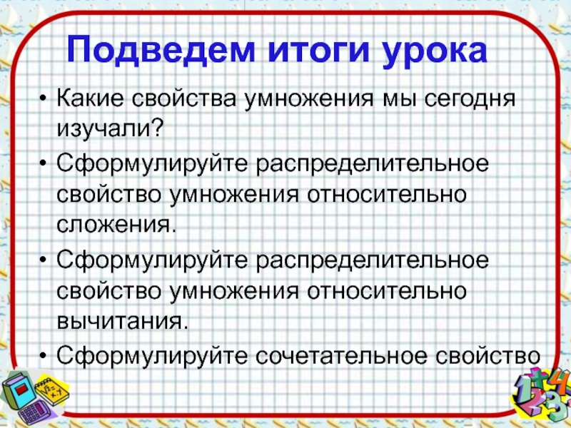 Распределительное свойство умножения относительно сложения.
