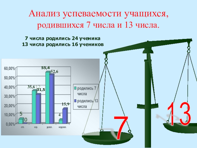 13 числа было опрошено больше учащихся, чем 7 числа и количество отметок в этот день поставлено больше.
