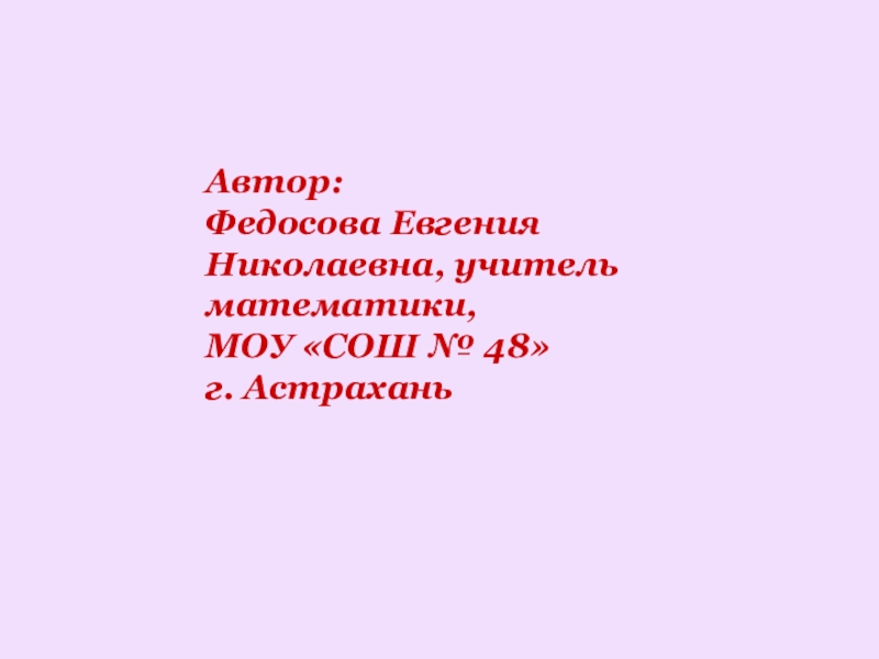 Автор: Федосова Евгения Николаевна, учитель математики,МОУ «СОШ № 48» г. Астрахань