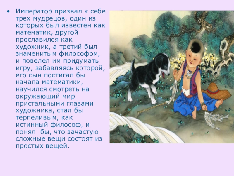 Слайд 3Император призвал к себе трех мудрецов, один из которых был известен