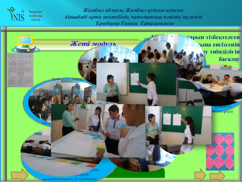 Модуль идеяларын тізбектелген сабақтар топтамасына енгізгенін негіздеуі және енгізу тиімділігін бағалау
