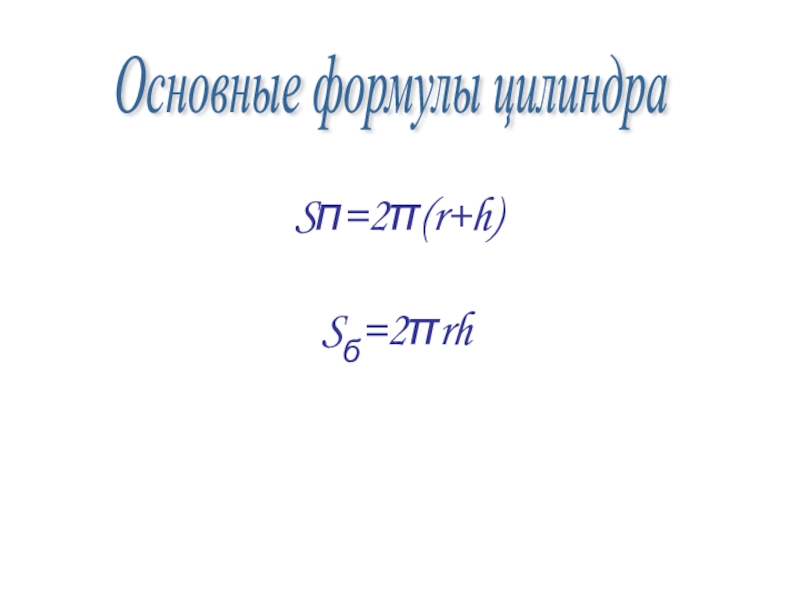 Sп=2π(r+h)Sб=2πrhОсновные формулы цилиндра