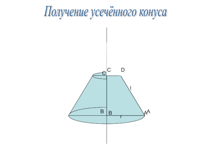 Sп=π(r+r1)l+ π(r12 + r2)Sб= π(r+r1)lОсновные формулы усечённого конуса