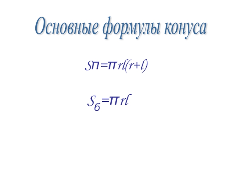 Sп=πrl(r+l)Sб=πrlОсновные формулы конуса