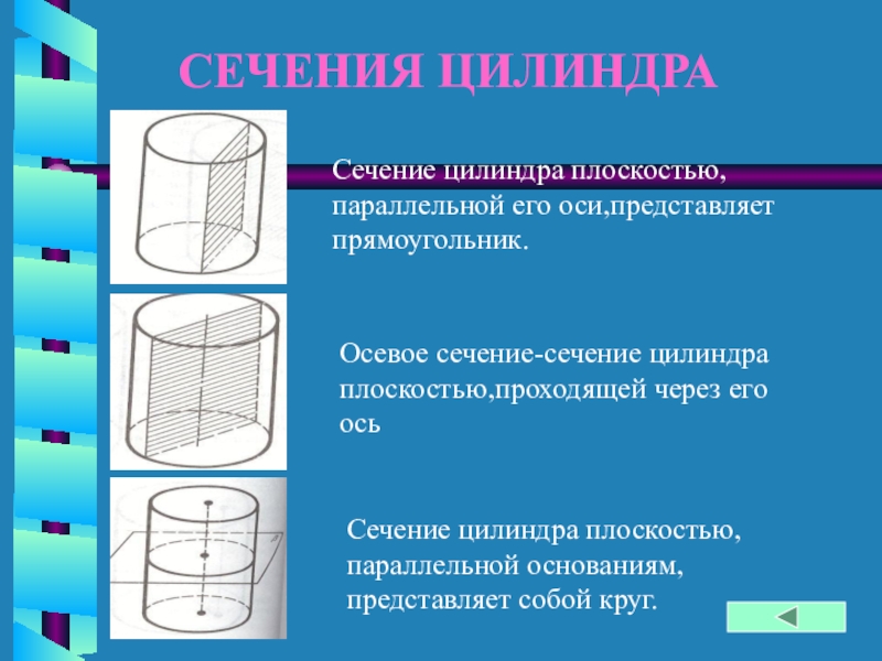 Сечение цилиндра плоскостью, параллельной основаниям, представляет собой круг.
