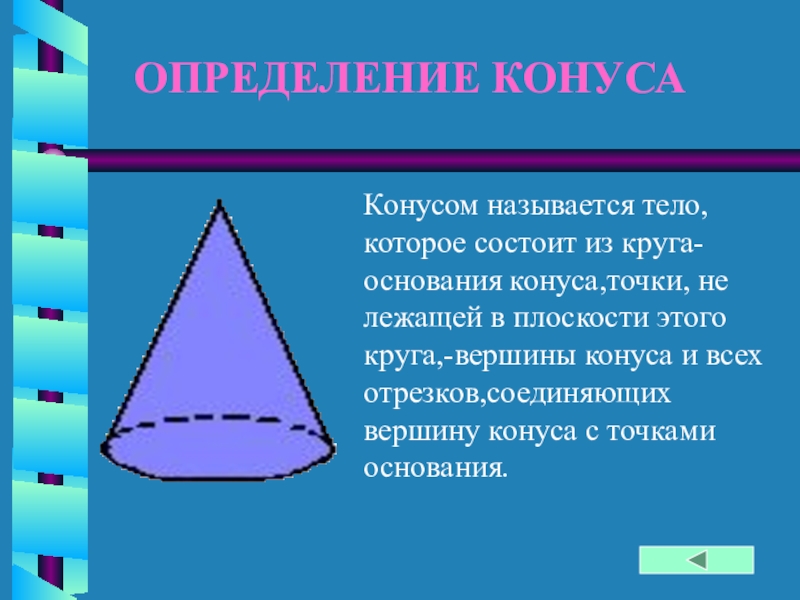 Конус-тело, которое получено при вращении прямоугольного треугольника вокруг его катета как оси