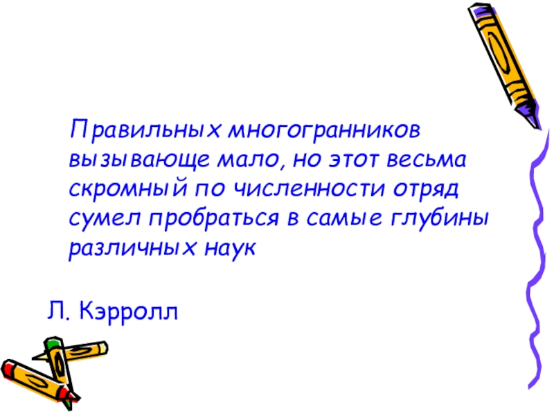 Правильных многогранников вызывающе мало, но этот весьма скромный по численности отряд сумел пробраться в самые глубины различных наук Л. Кэрролл