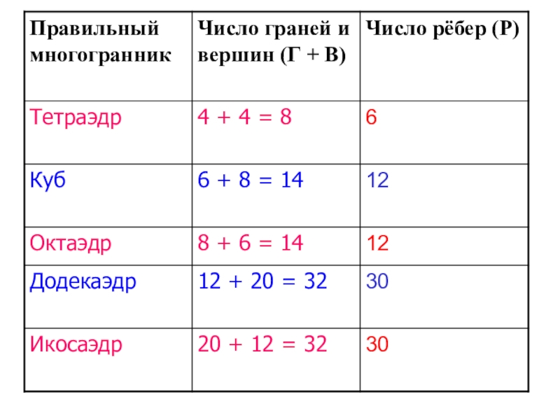 Презентация по математике на тему «Теорема Эйлера и  правильные многогранники»Григорьева Татьяна Викторовна