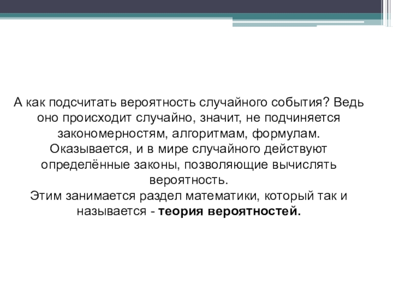 Слайд 8А как подсчитать вероятность случайного события? Ведь оно происходит случайно, значит,
