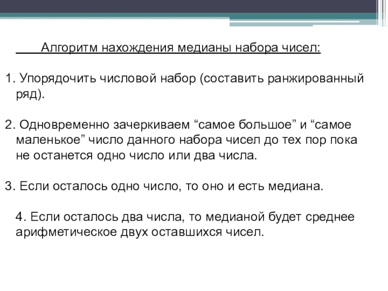 Слайд 24 Алгоритм нахождения медианы набора чисел:
