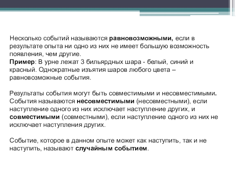 Слайд 5Несколько событий называются равновозможными, если в результате опыта ни одно из