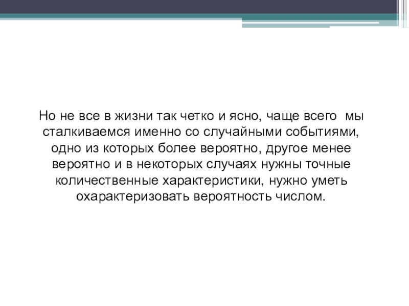 мы сталкиваемся именно со случайными событиями, одно из которых более вероятно, другое менее вероятно и в некоторых случаях нужны точные количественные характеристики, нужно уметь охарактеризовать вероятность числом.