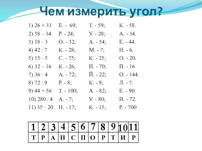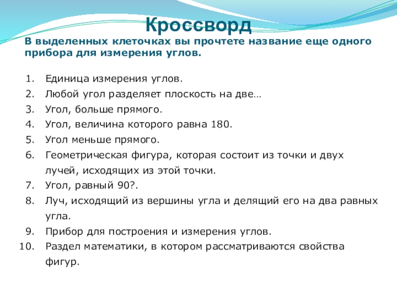 В выделенных клеточках вы прочтете название еще одного прибора для измерения углов.