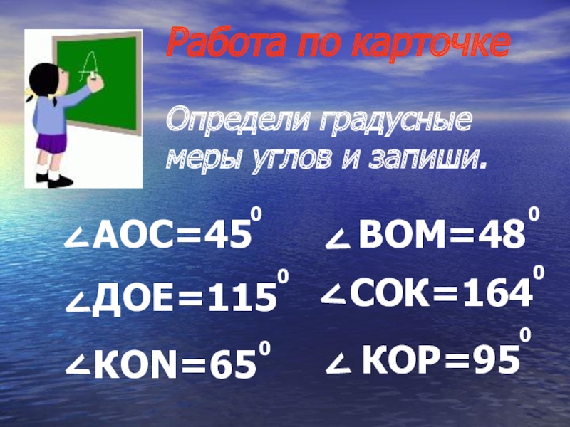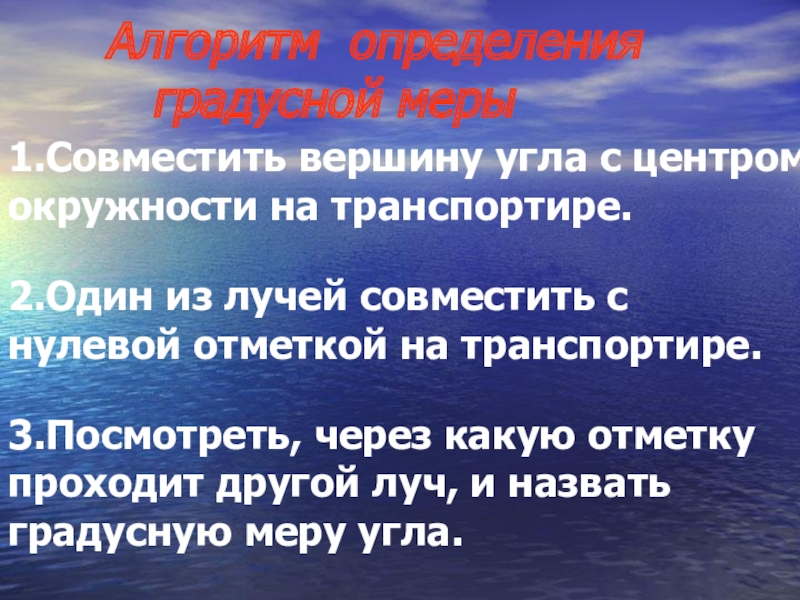 3.Посмотреть, через какую отметку проходит другой луч, и назвать градусную меру угла.