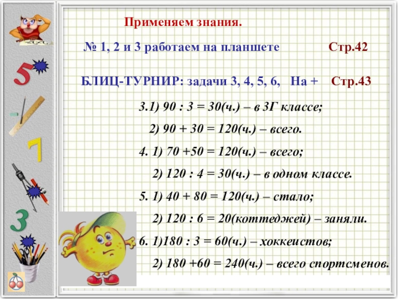 6. 1)180 : 3 = 60(ч.) – хоккеистов;