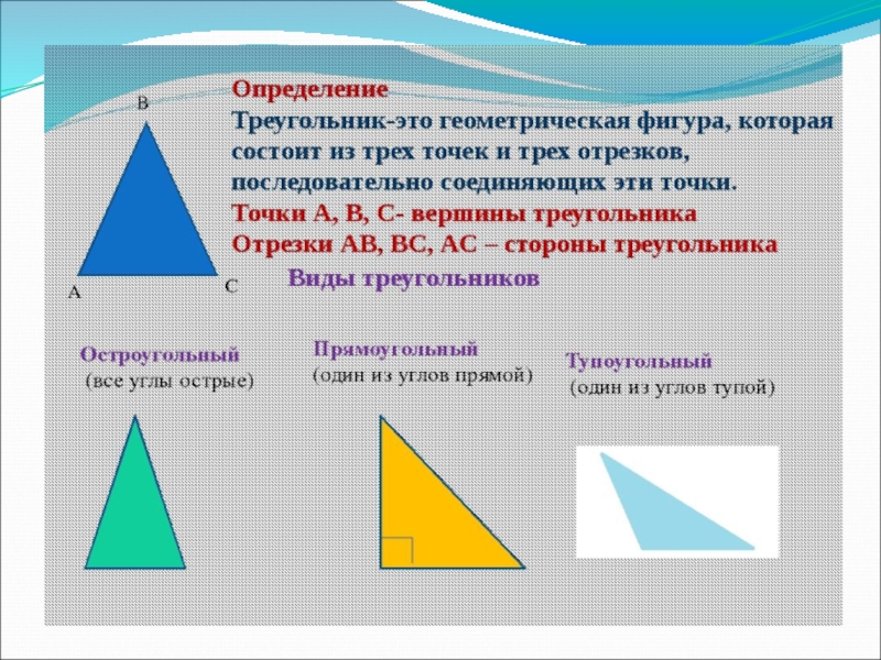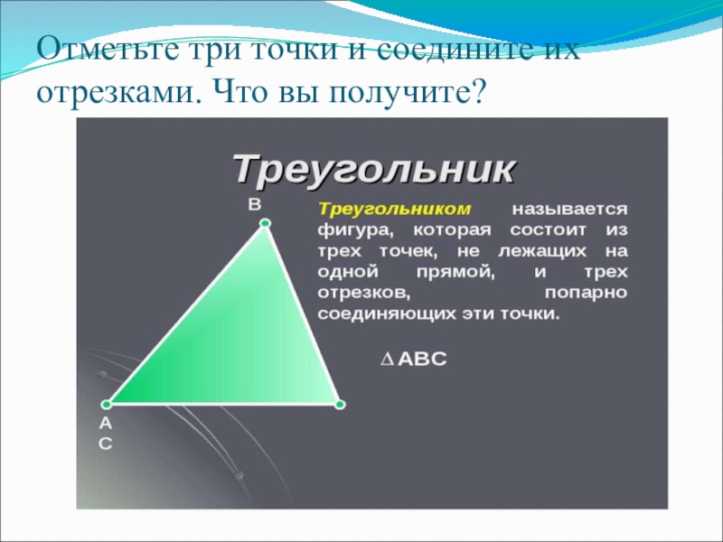 -эта фигура – плоский многоугольник, состоящий из трех сторон и имеющий столько же углов