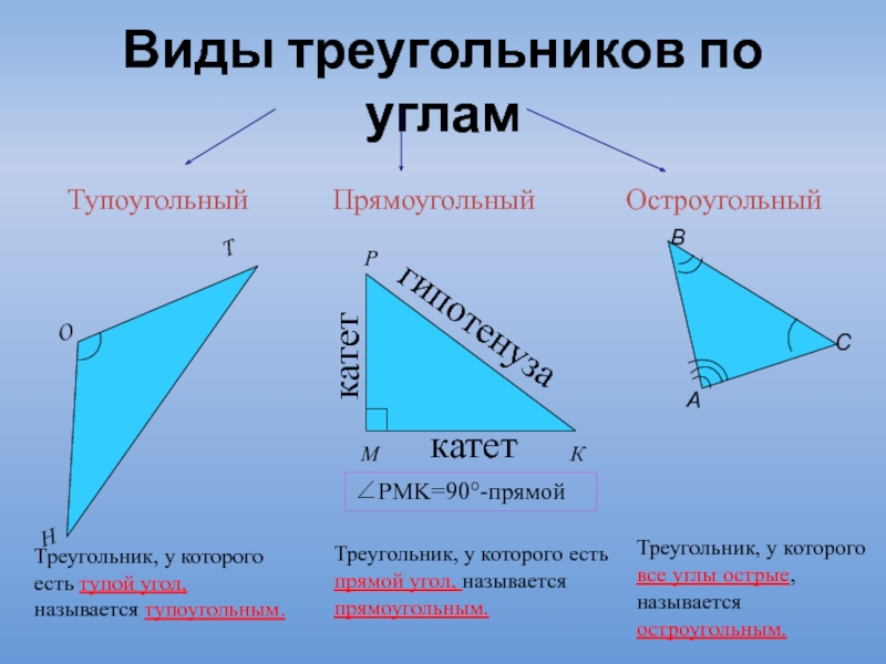 - прямоугольный треугольник – это треугольник у которого все углы прямые;