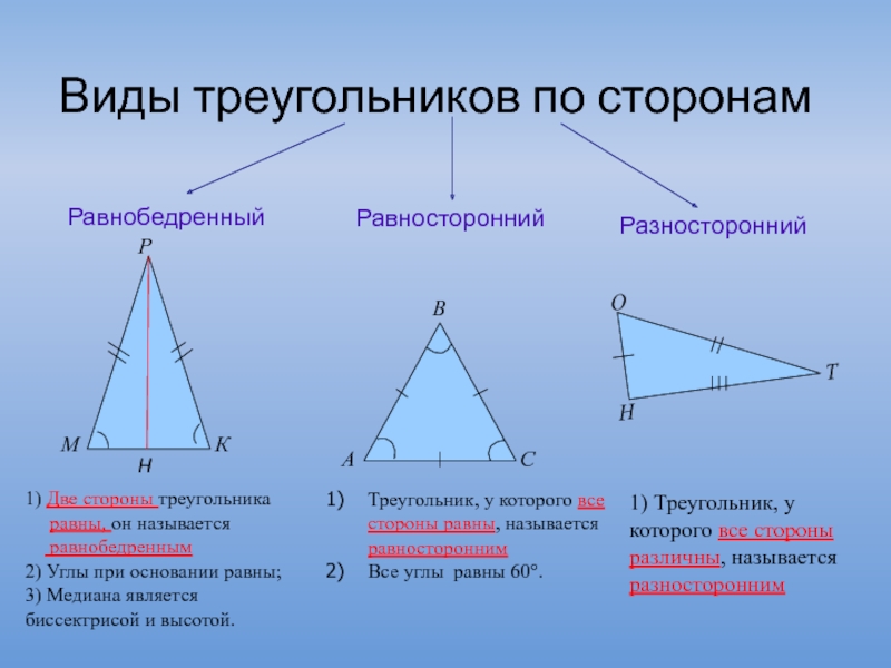 1) Треугольник, у которого все стороны различны, называется разносторонним