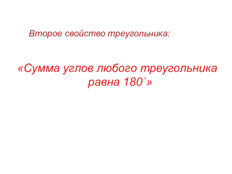 Второе свойство треугольника:«Сумма углов любого треугольника равна 180˚»
