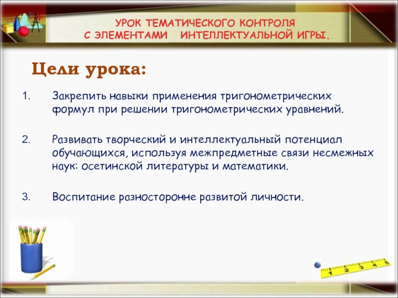 УРОК ТЕМАТИЧЕСКОГО КОНТРОЛЯ